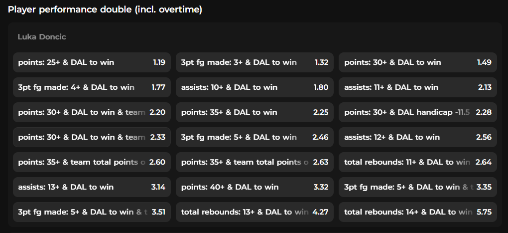 Player’s double performance: This is an alternative option where you bet whether a player will reach two specific milestones, such as points and assists, during the game.