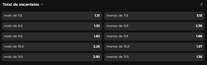 - Odd/Even Corners: Bet on whether the total number of corner kicks in the match will be odd or even.
